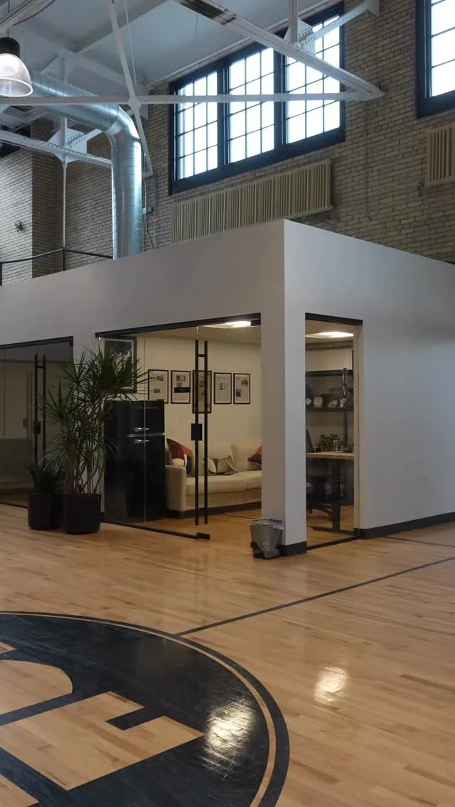 Located inside the former gym, a shared coworking lounge with fully furnished private offices available for month-to-month or annual memberships.